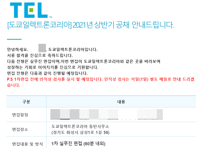 | 도쿄일렉트론코리아 최종합격 후기 : 면접 (14) | 2023.04.08 |