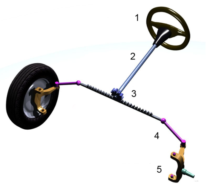 4,5 : 타이어와의 링크 > 랙의 움직임을 타이어에 전달